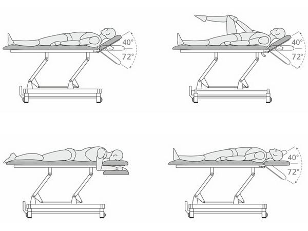 - Pozitionare mecanică a tetierei de la -72° la +40°.