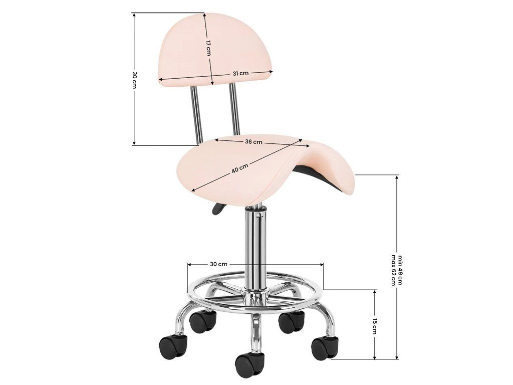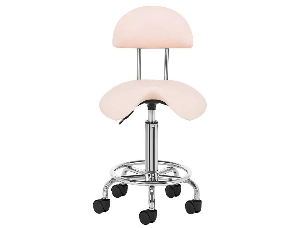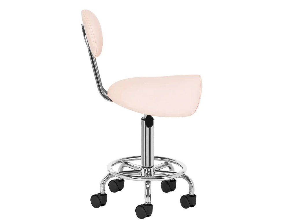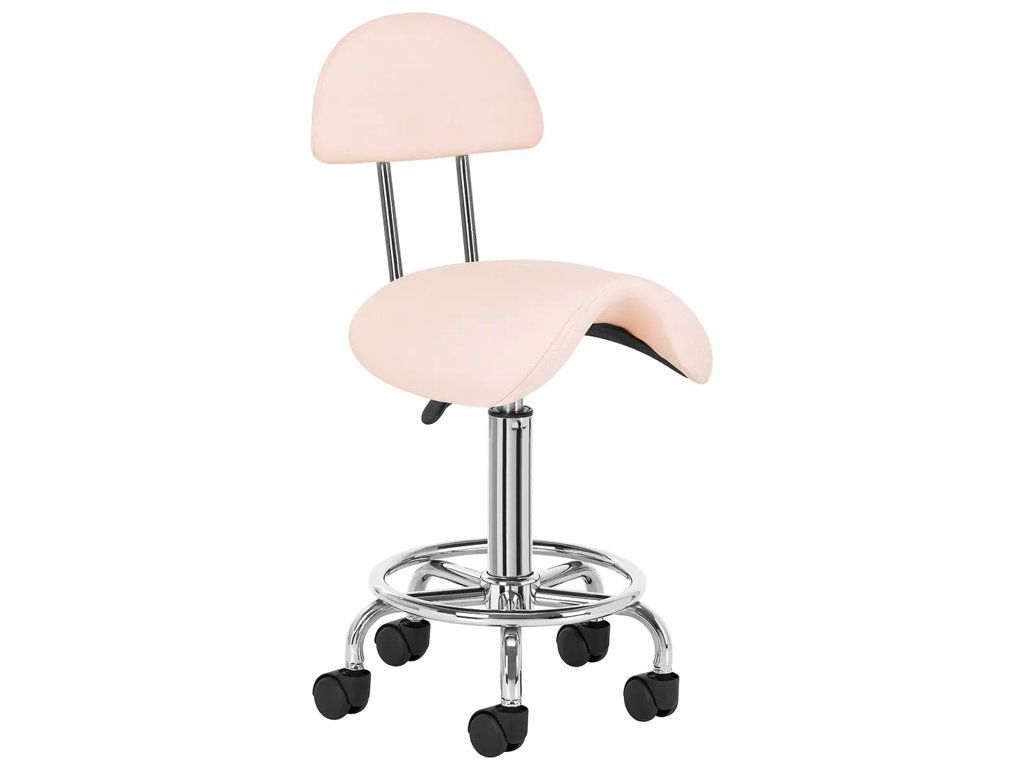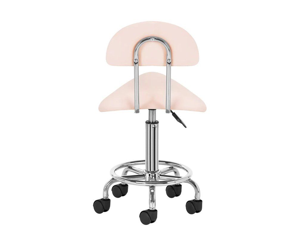 Scaunul cosmetic confortabil si stabil cu spătar pe o bază stabilă cu cinci brate este potrivit pentru saloanele de înfrumusetare si tatuaje.
