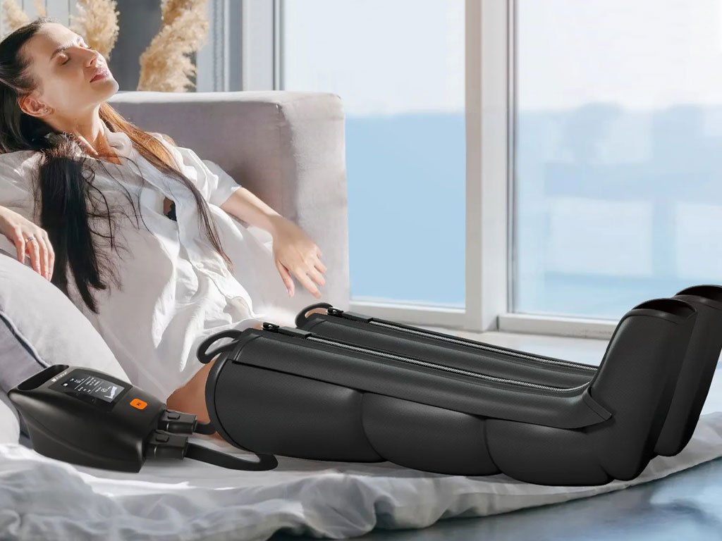 - 4 camere de aer separate: asigură un masaj profund al picioarelor, viteilor si coapselor, simulând tehnica de frământare a unui maseur cu două mâini.