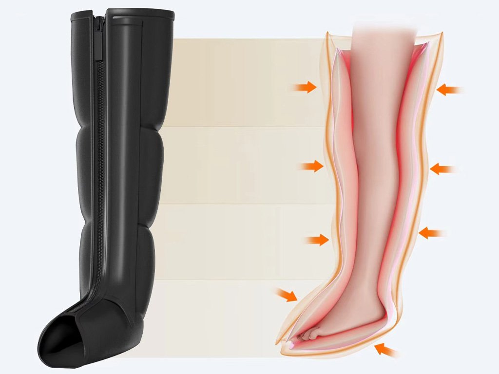 - 12 zone de masaj: acoperă întregul picior de la tibie la coapsă.
