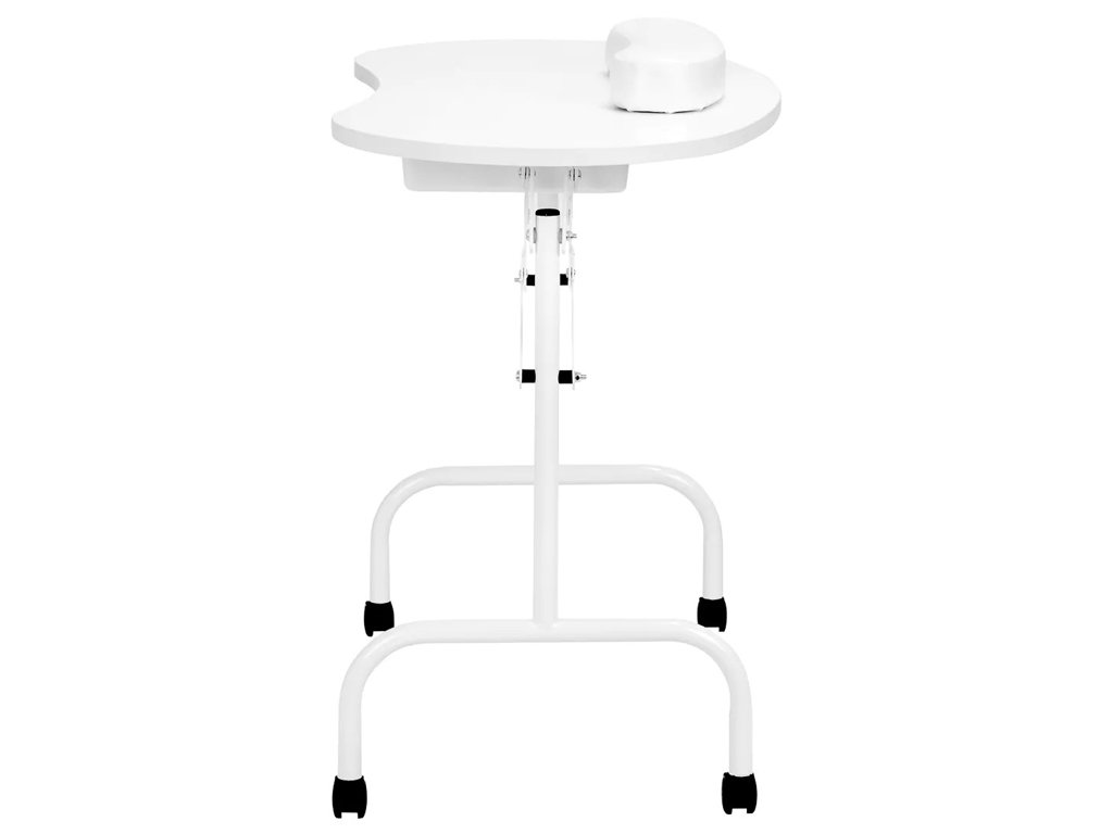 Masa este ușoară, dar în același timp stabilă, oferind confort și siguranță la lucru. După pliere ocupă un spațiu minim, ceea ce facilitează mult transportul și depozitarea. Sub blatul de lucru se află un sertar practic, care oferă spațiu pentru cele mai importante instrumente, astfel încât să fie mereu la îndemână. Pachetul include și o pernă pentru mâini, care îmbunătățește confortul clientei și facilitează efectuarea precisă a manichiurii.
