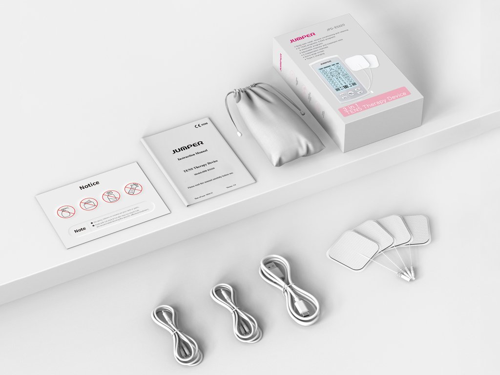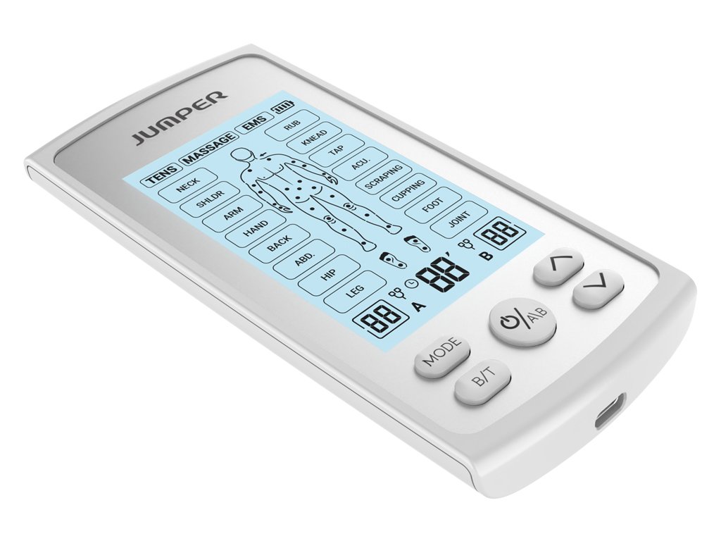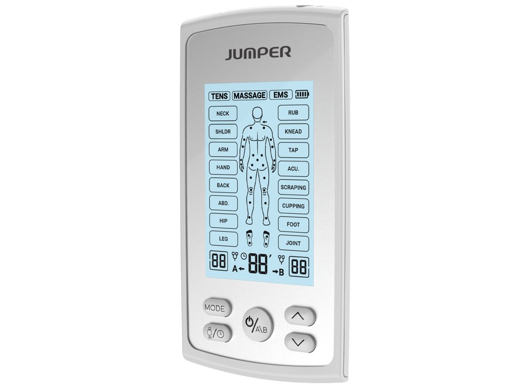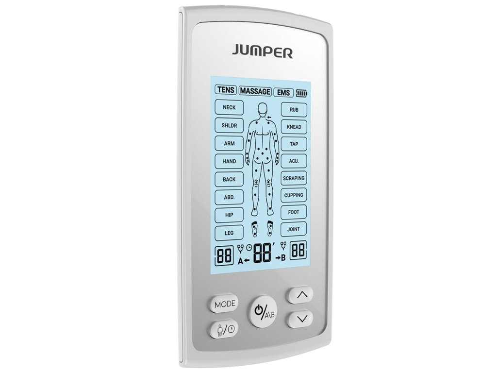 Dispozitivul de electrostimulare Jumper JPD-ES220 oferă îngrijire eficientă la domiciliu prin combinația a trei moduri: TENS (pentru ameliorarea durerii), EMS (pentru întărirea și regenerarea mușchilor) și MASAJ (pentru relaxare).
