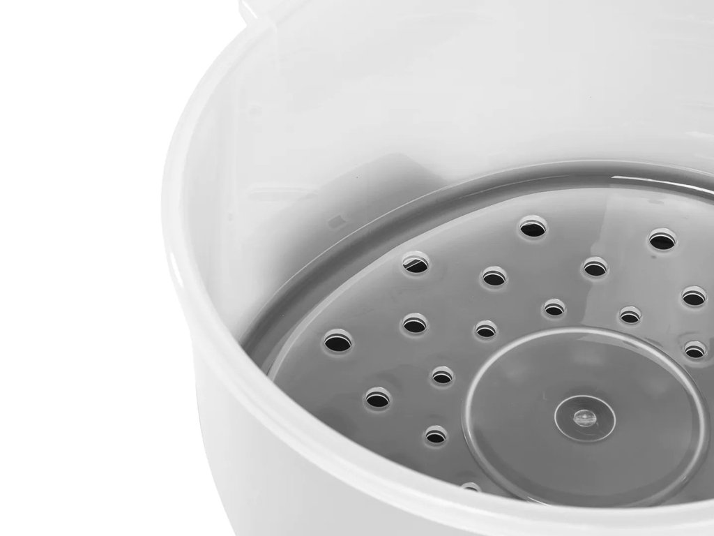 Apa poate fi adăugată ușor din partea superioară sau prin orificiile laterale ale recipientului.