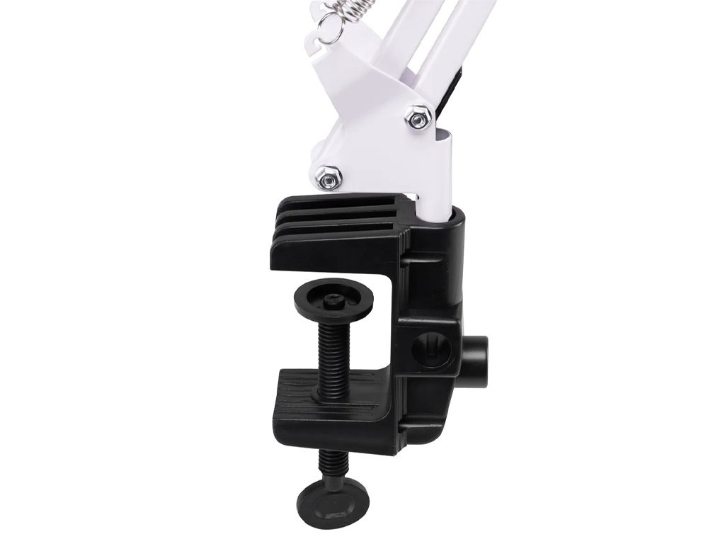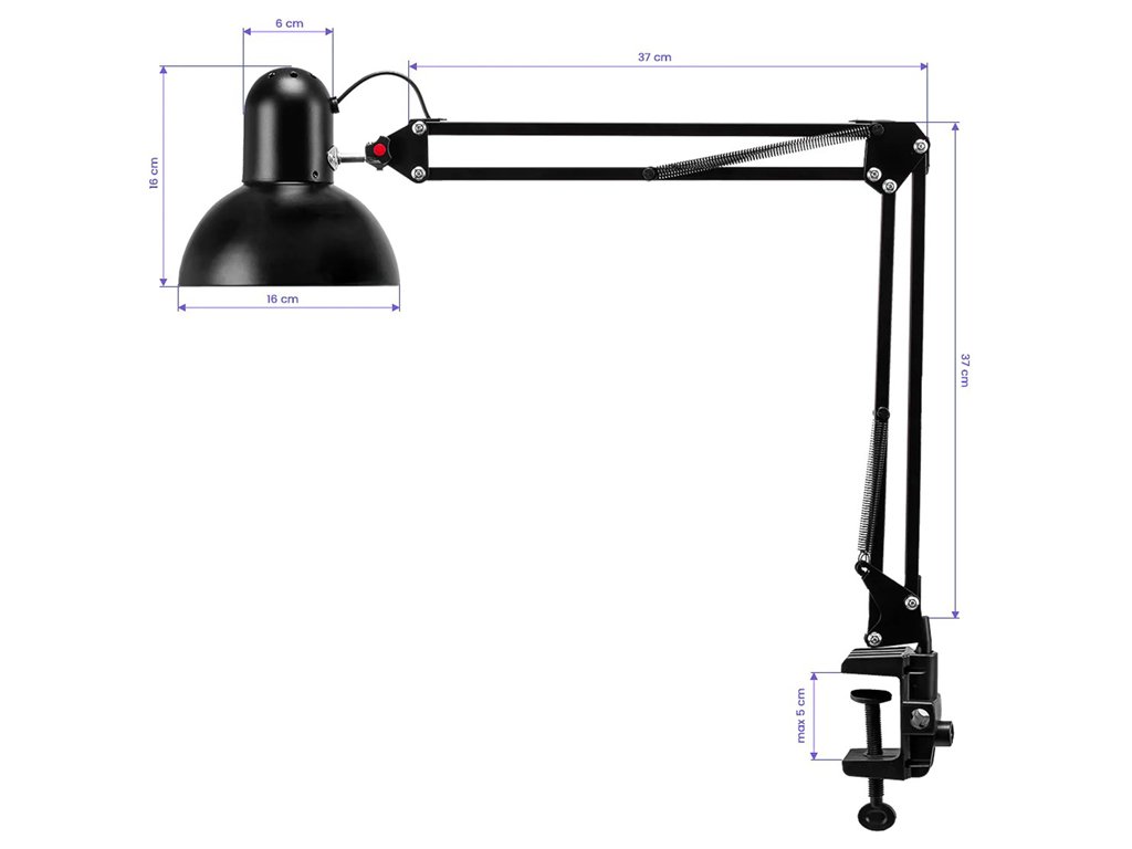 Lampa se fixează rapid și sigur la marginea mesei printr-o clemă practică cu deschidere de până la 5 cm, compatibilă cu majoritatea suprafețelor de lucru.
