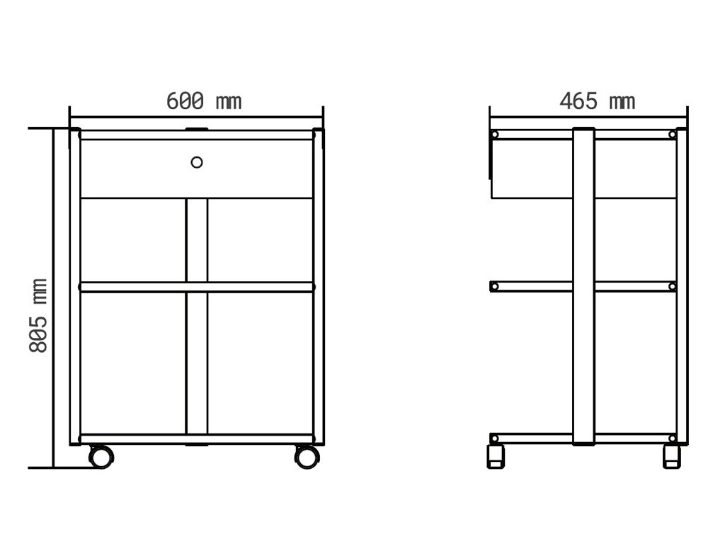 Căruciorul practic pentru cosmetice Fabulo Mabel este echipat cu trei rafturi din sticlă cu o fată deschisă si un sertar care se poate încuia, care permite depozitarea instrumentelor si echipamentelor cosmetice. Datorită celor 4 rotite, masa este complet mobilă si usor de mutat. Structura metalică albă este foarte stabilă si este, de asemenea, potrivită pentru fixarea unei lămpi cosmetice.