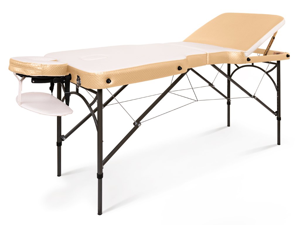 Confortul clientului este asigurat de un strat de spumă gros de 5 cm si de o tapiterie PU de înaltă calitate, cu o suprafată moale la atingere si usor de curătat. Colturile rotunjite si deschiderea integrată a fetei cu dop sporesc confortul în timpul tratamentului. Tetiera cu o pernă în formă de „U” oferă sprijin optim pentru cap, facilitând un masaj aprofundat al gâtului si ceafei. A treia parte a patului, care serveste drept suport pentru picioare (sau spătar), poate fi reglată aproape la unghi drept.