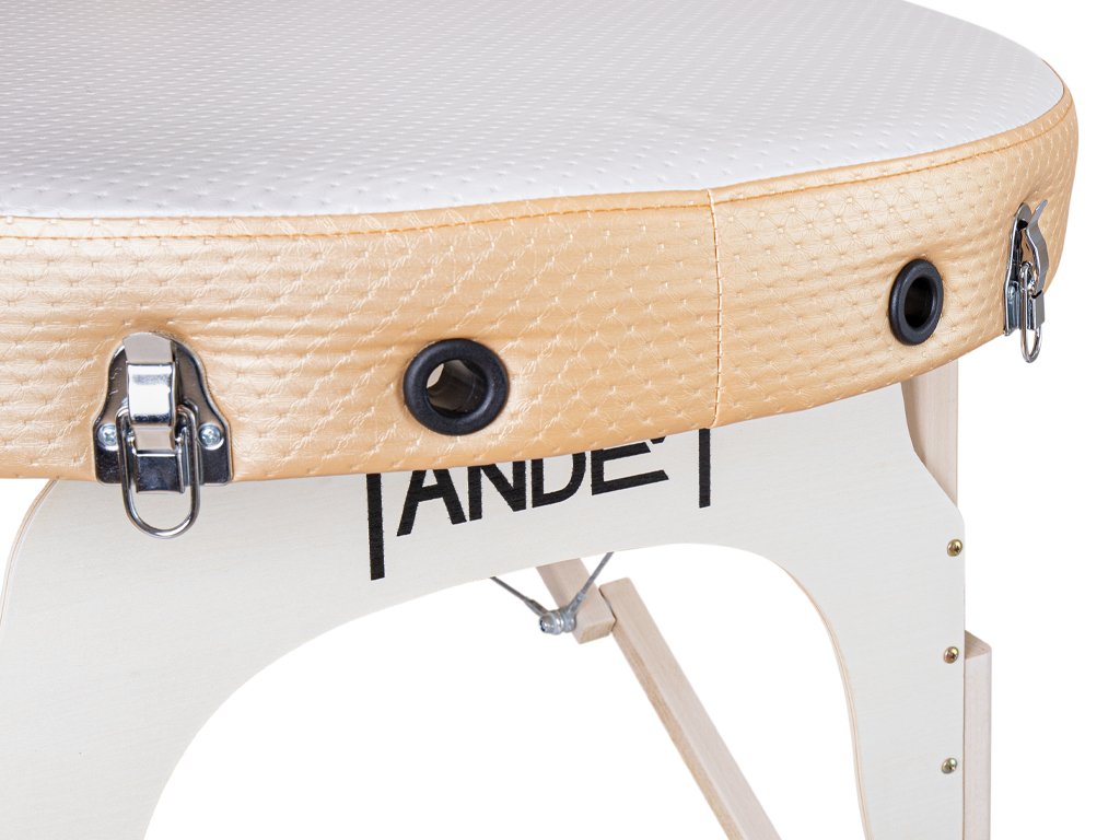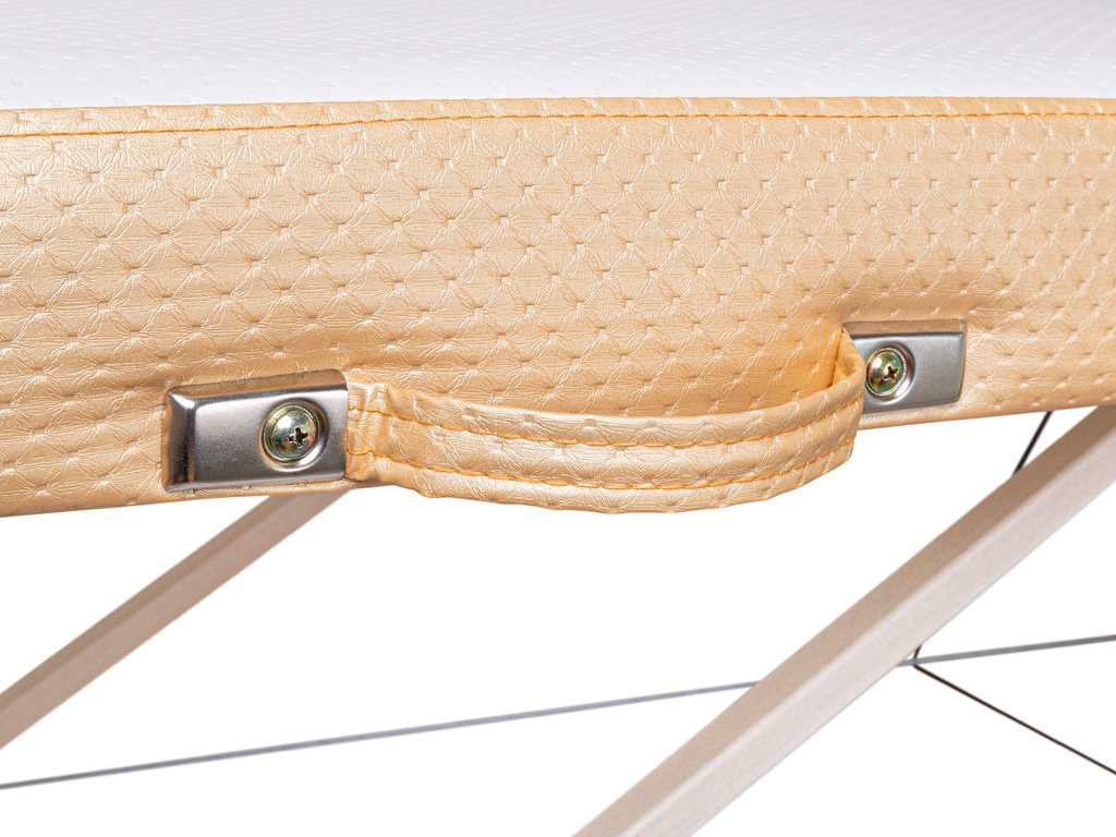 Structura din lemn cu sistem de ranforsare din oțel garantează siguranța în timpul oricărui tip de tratament. Înălțimea mesei este ușor reglabilă, de la 63 la 88 cm, permițând fiecărui terapeut să o adapteze propriilor nevoi și modului de lucru. Structura pliabilă din două părți permite o pliere și depliere rapidă, facilitând manipularea, mai ales pentru cei care fac naveta pentru consultații. În ciuda robusteții, masa are o greutate redusă de doar 14,4 kg, iar împreună cu geanta practică asigură un transport confortabil.