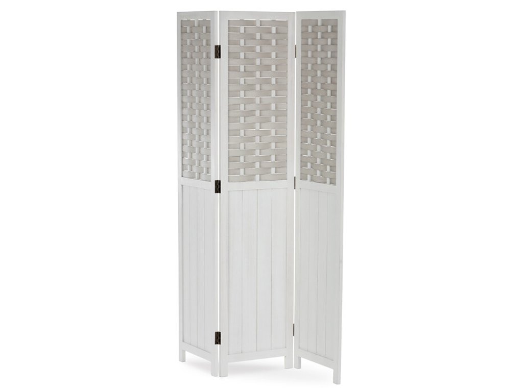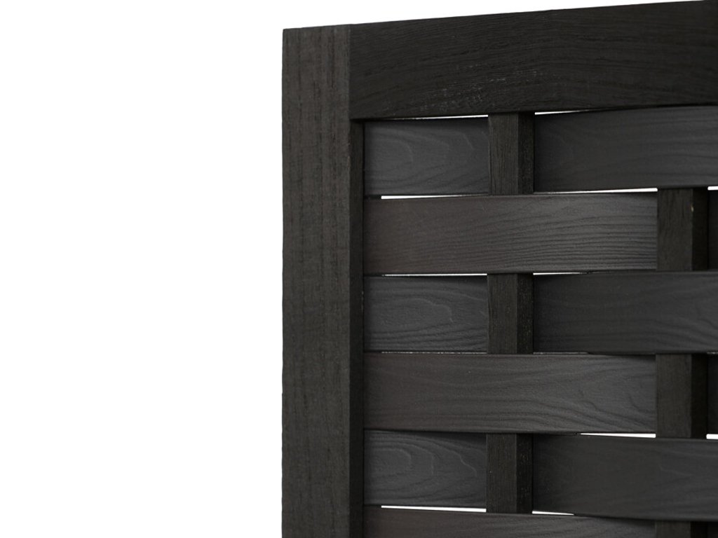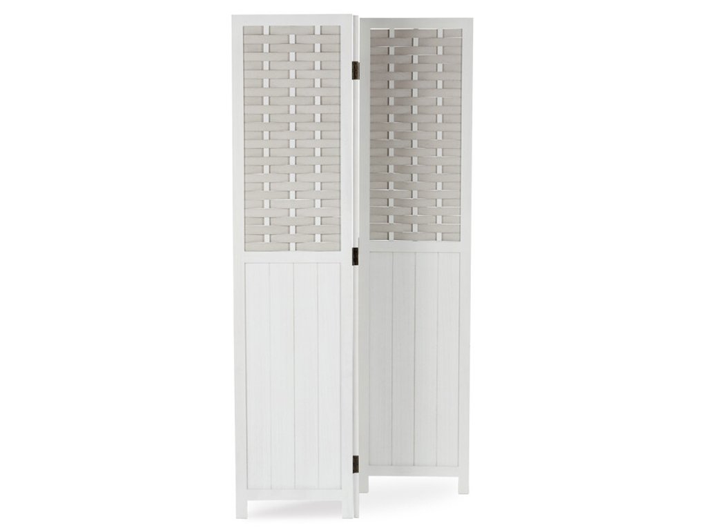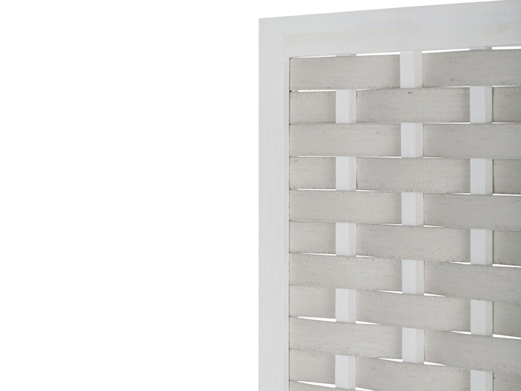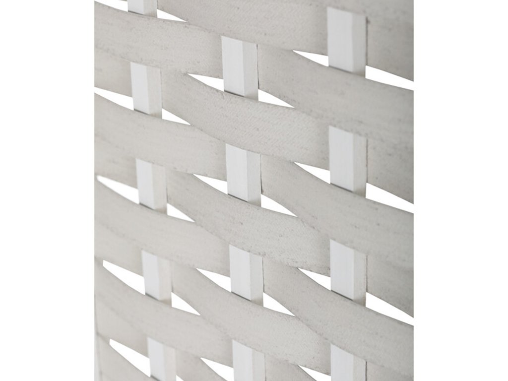 Partea superioară a paravanului este completată de o umplutură decorativă din PVC împletit, care îi oferă un aspect plăcut și rafinat, permițând totodată o transmitere ușoară a luminii. Astfel, spațiul rămâne aerisit și luminos, oferind în același timp intimitatea necesară.