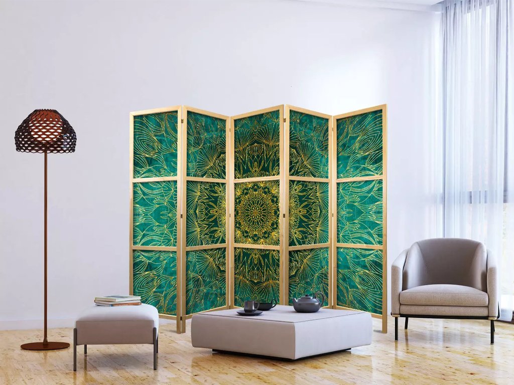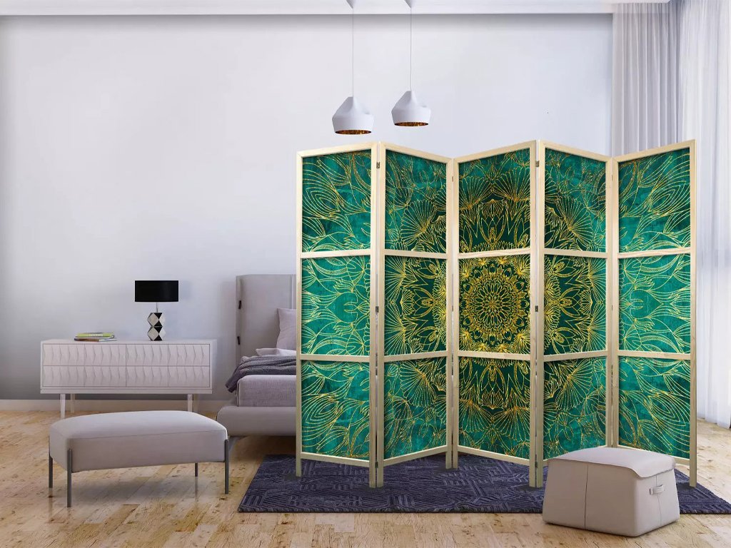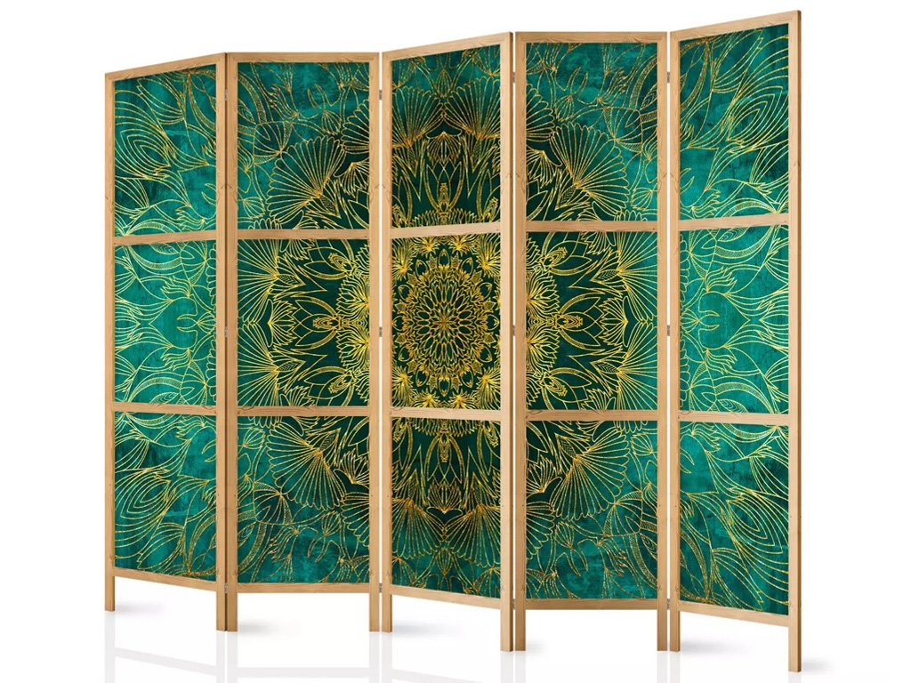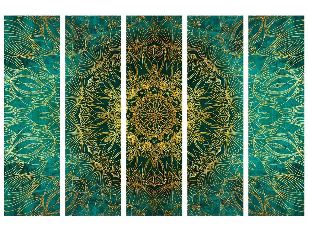 Paravan din lemn Fabulo 5 piese - Mandala aurie 172 x 225 cm | imprimare pe o parte a paravanului