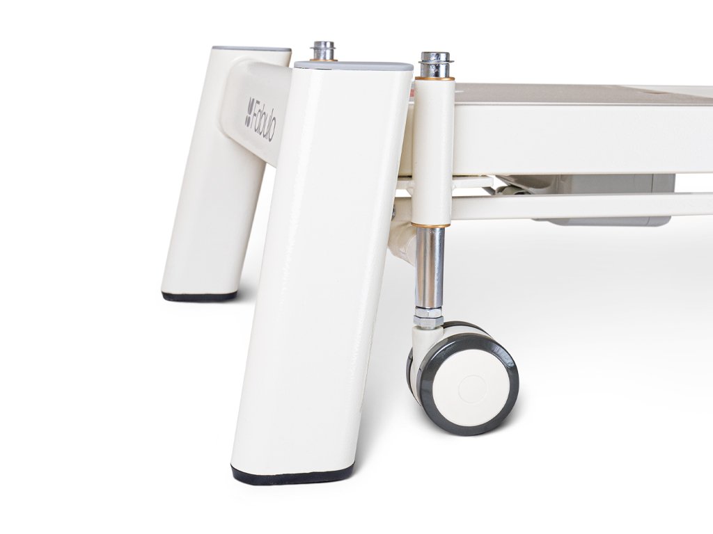 Transportul patului este facilitat de un sistem practic de roți, care se pot extinde și retrage simplu printr-o manetă pedală.