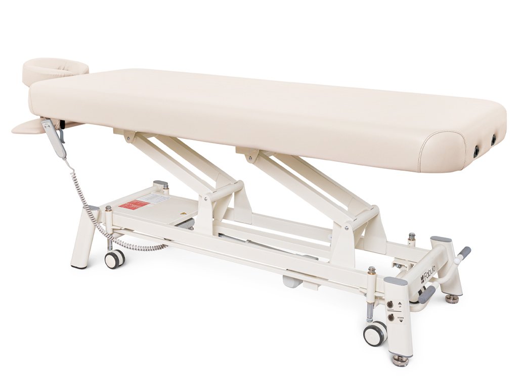 Cu o lățime de 71 cm și o lungime de 184 cm (sau 212 cm cu suportul pentru cap), patul oferă suficient spațiu pentru confortul clientului în timpul oricărei terapii. Marginile rotunjite sporesc atât siguranța, cât și estetica designului.