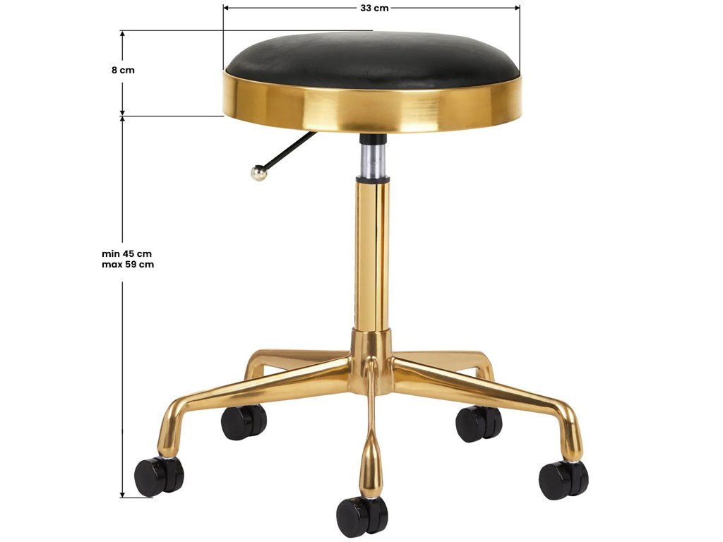 Un mecanism de reglare a înăltimii cu arc cu gaz permite ca scaunul să fie usor reglat la înăltimea dorită între 45 si 59 cm. Rotile din plastic permit o repozitionare usoară. Scaunul este complet rotativ.