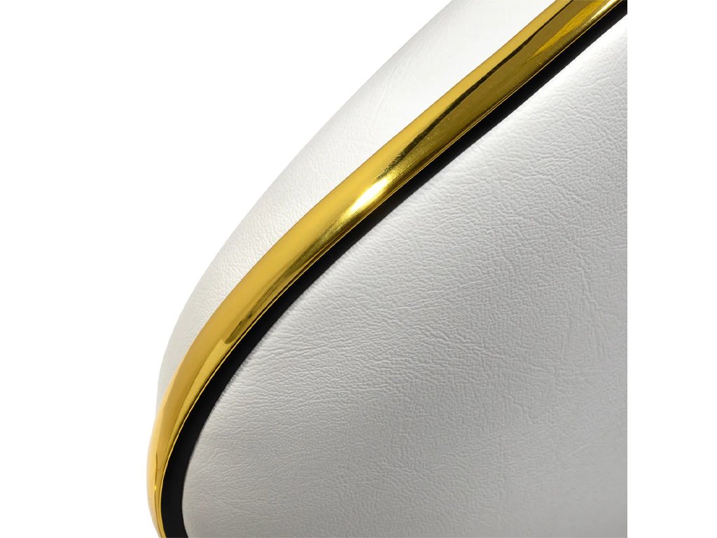 Tapițeria din piele sintetică este plăcută la atingere, durabilă și ușor de întreținut, iar elementele aurii lăcuite conferă scaunului un aspect luxos și distinctiv care atrage atenția clienților.