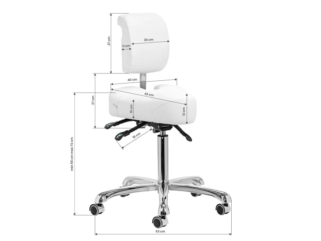 - Înălțime reglabilă: Înălțimea scaunului poate fi reglată între 55 și 72 cm, ceea ce permite o ajustare confortabilă în funcție de nevoile de lucru.
